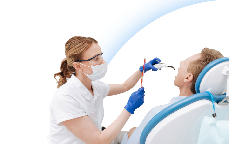 Осмотр ротовой полости под микроскопом и оценка ее состояния, профессиональная чистка зубов. Может понадобиться рентгеновский снимок.